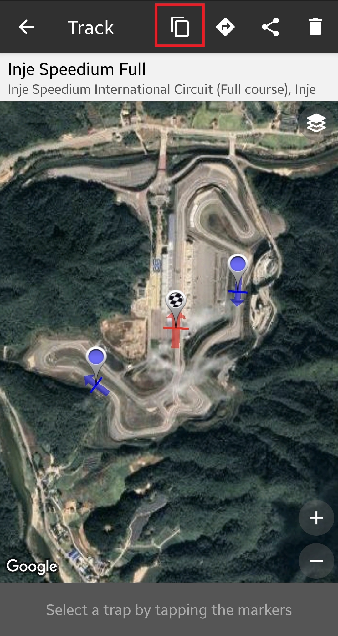 우선 문제가 된 인제스피디움의 트랙의 기준선은 어디인지 살펴보자 공식 라이브러리에 있는 인제 스피디움의 코스 맵을 다운로드하였다. 일단 원본은 보호 목적인지 수정이 되지 않기 때문에 빨간색 네모로 표시한 아이콘을 눌러 사본을 만들어 준다.
