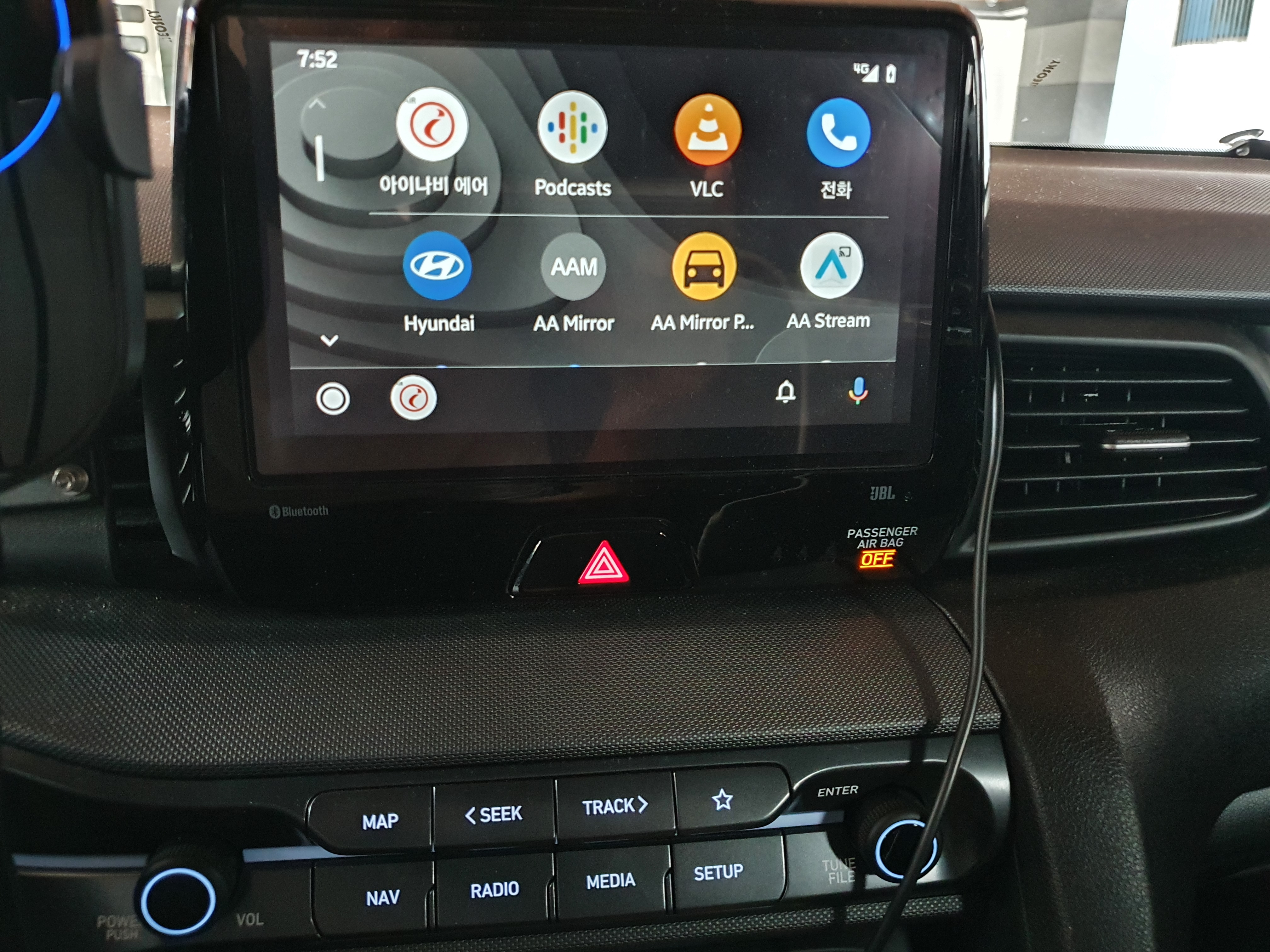 찍어보고 안건대 저 사진은 AA mirror plus를 동작시킨 건데 Screen2Auto나 AA mirror앱에 비해 블랭크 스페이스가 많고 화면이 작게 출력되어 답답한 편이네요.