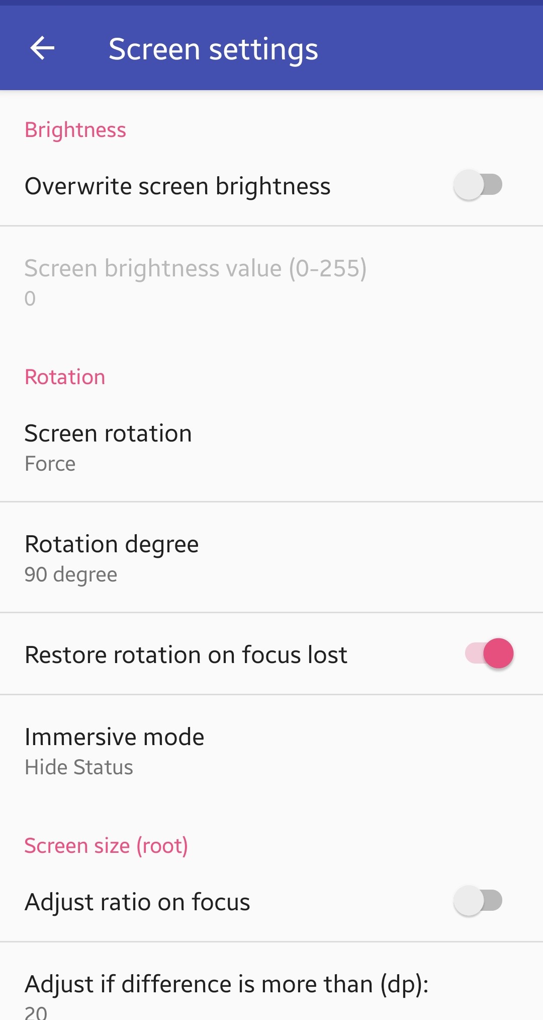 Immersive mode 같은 경우에는 스테이터스 바 등을 숨길지 결정합니다. 해보면서 설정해주세요.