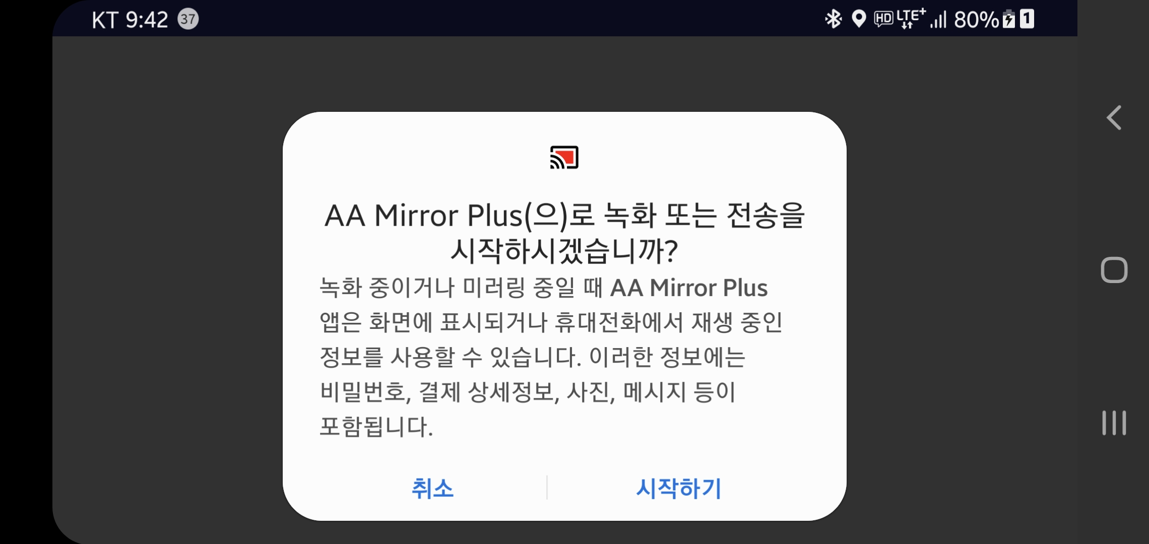미러링이 시작됩니다.