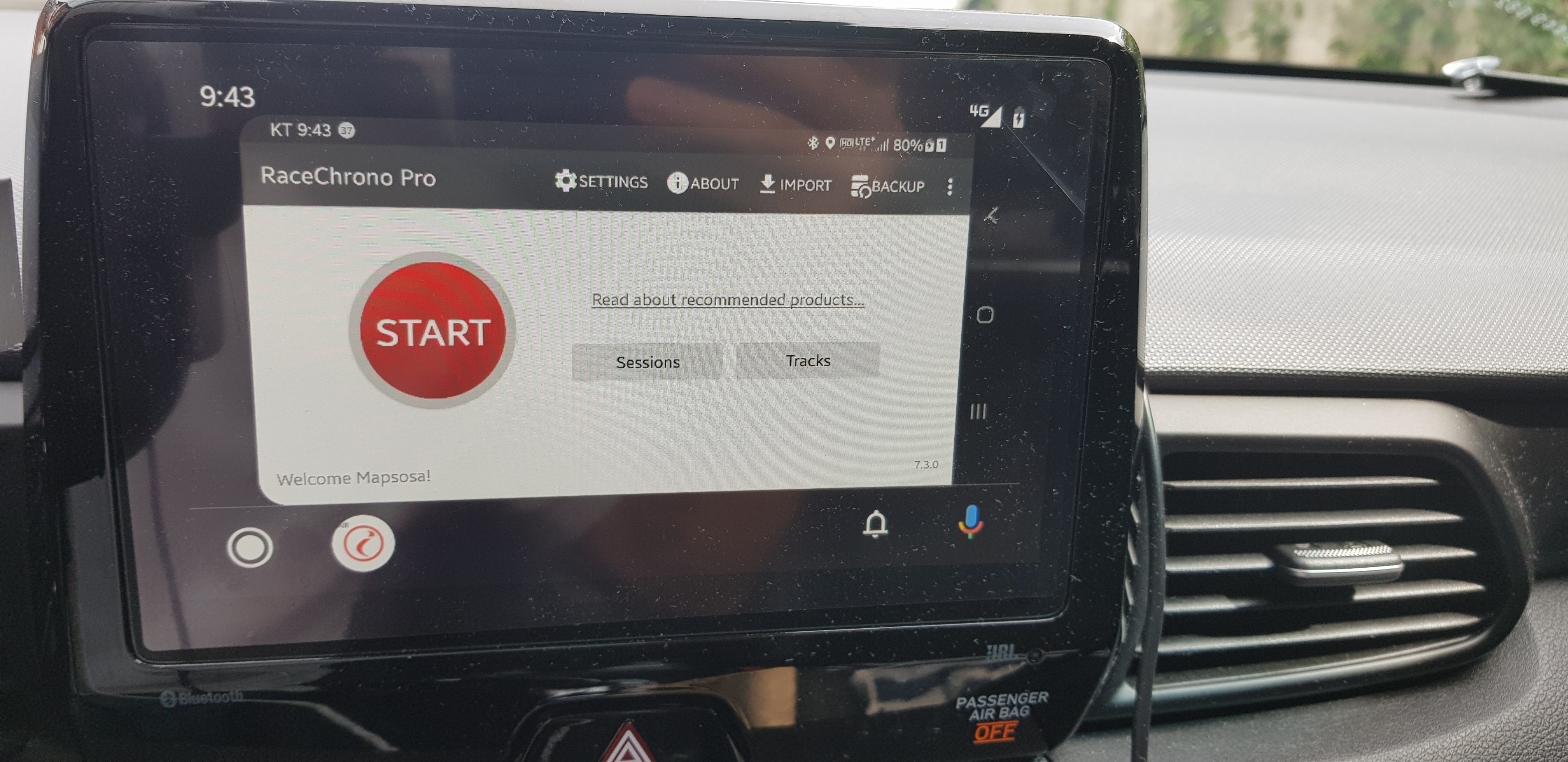 여튼 저는 휴대폰 거치대가 서킷에서 시야에 좀 방해되는 면이 있어서 내비게이션 화면으로 볼 수 있으면 좋겠다 싶어서 사용해본 거구요. 그런 점에서는 만족합니다 폰은 대시보드 하단에 던져두고도 내비게이션 화면으로도 랩타임을 확인할 수 있으니까요.