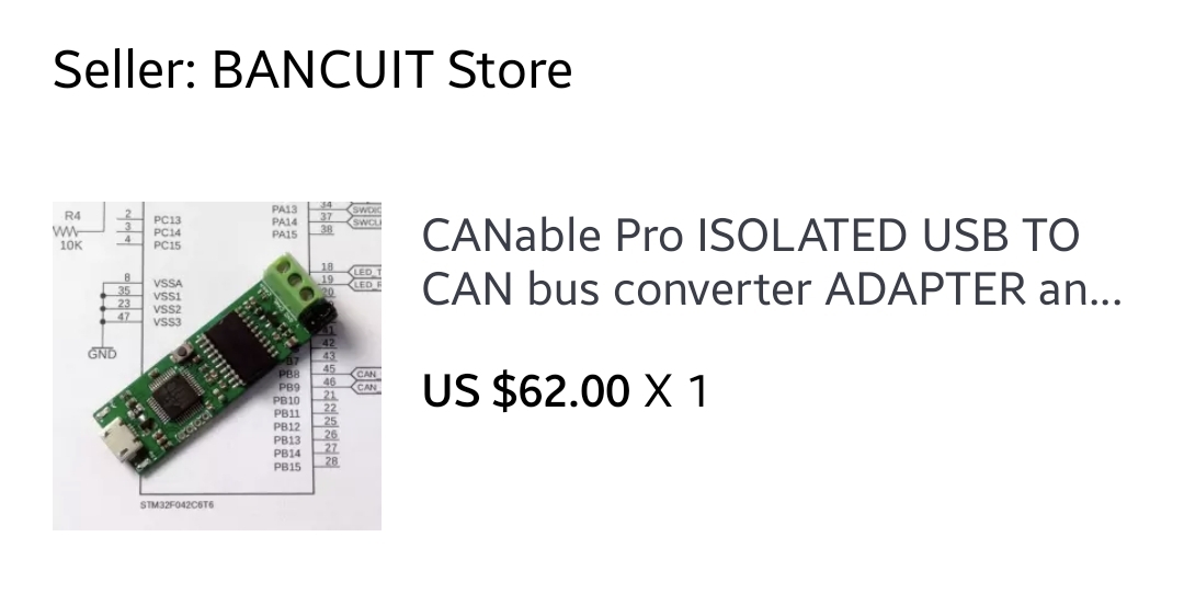 다행인 것은 CANable은 Opensource 하드웨어라 누구나 만들 수 있다. 알리익스프레스에서 파는 곳을 찾아서 주문을 했다.