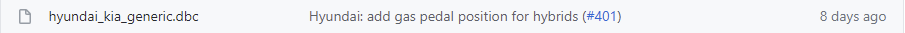 그리고 혹시나 다른 차종이 추가된 OpenDBC는 없나해서 OpenPilot의 Fork를 찾아보다가 한 포크에서 Veloster JS의 CAN ID List도 찾아냈다.