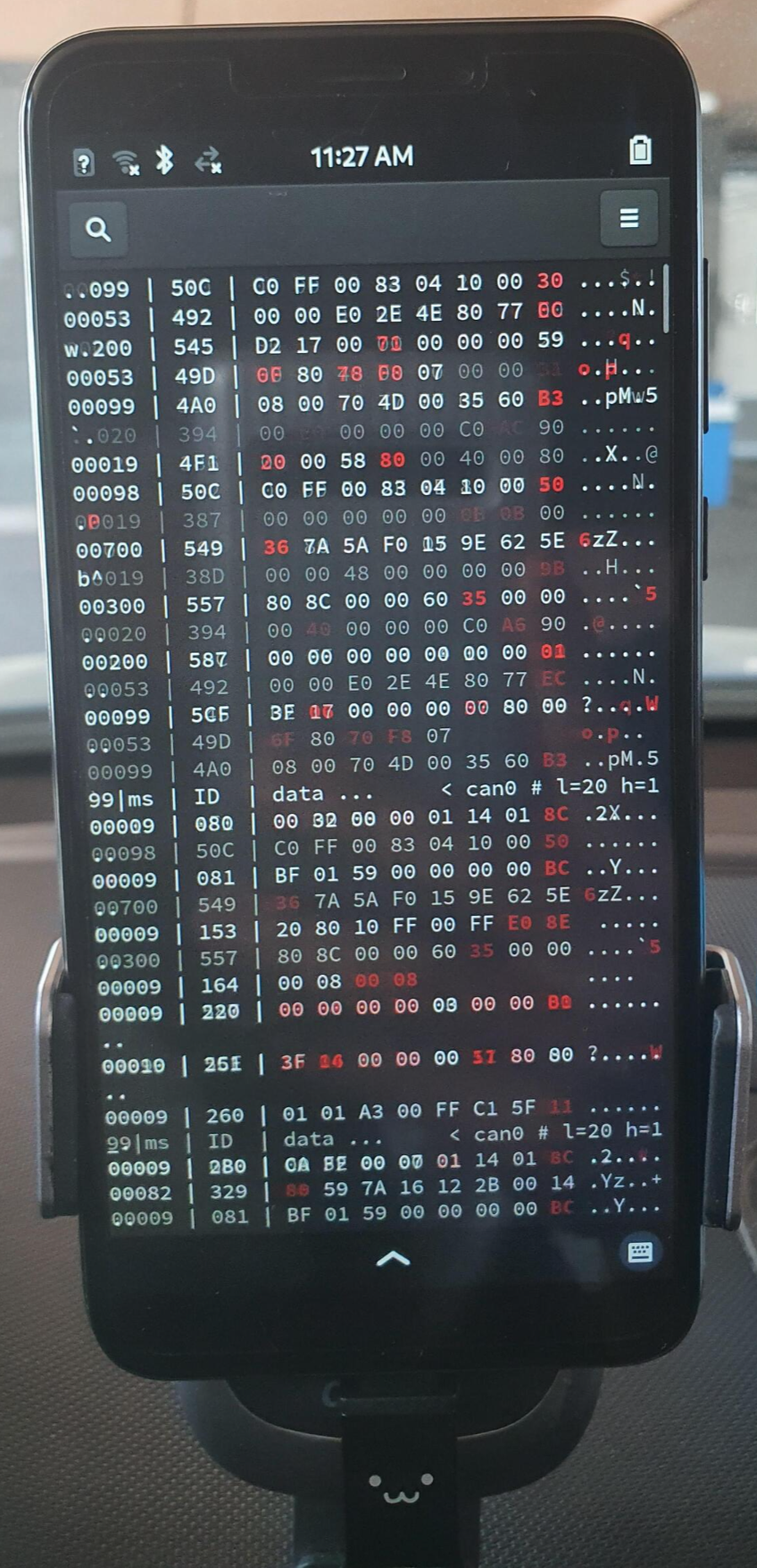 근데 이제서야 알게된건데 노트북보다 차에서 보고 캔통신을 로깅하거나 분석할때 편한 것 같다 왜냐하면 폰 거치대에 그대로 꽂을 수 있으니까...