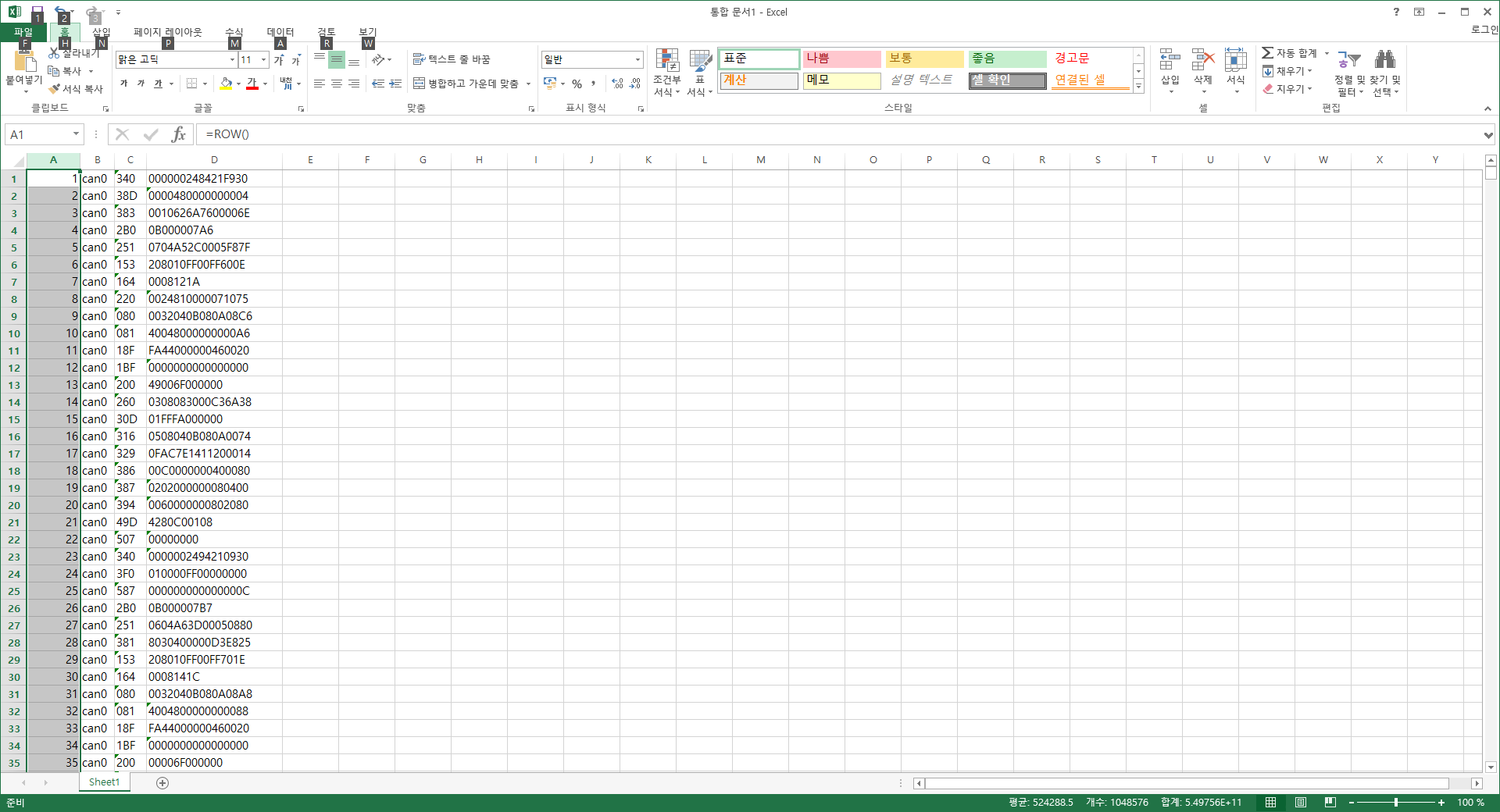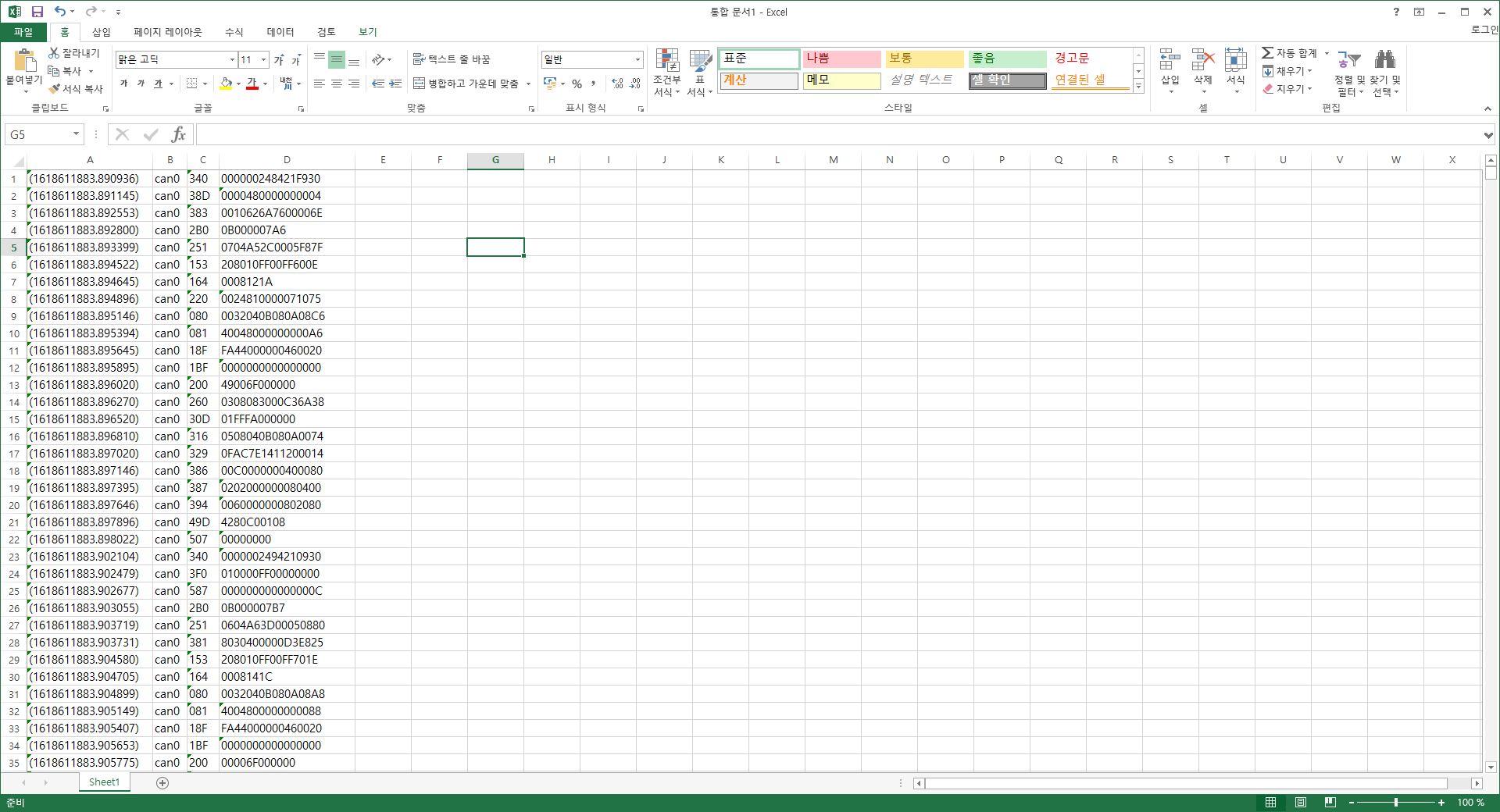 먼저 can0을 tab can0 tab으로 바꿔야한다 엑셀을 이용해 분석할건데